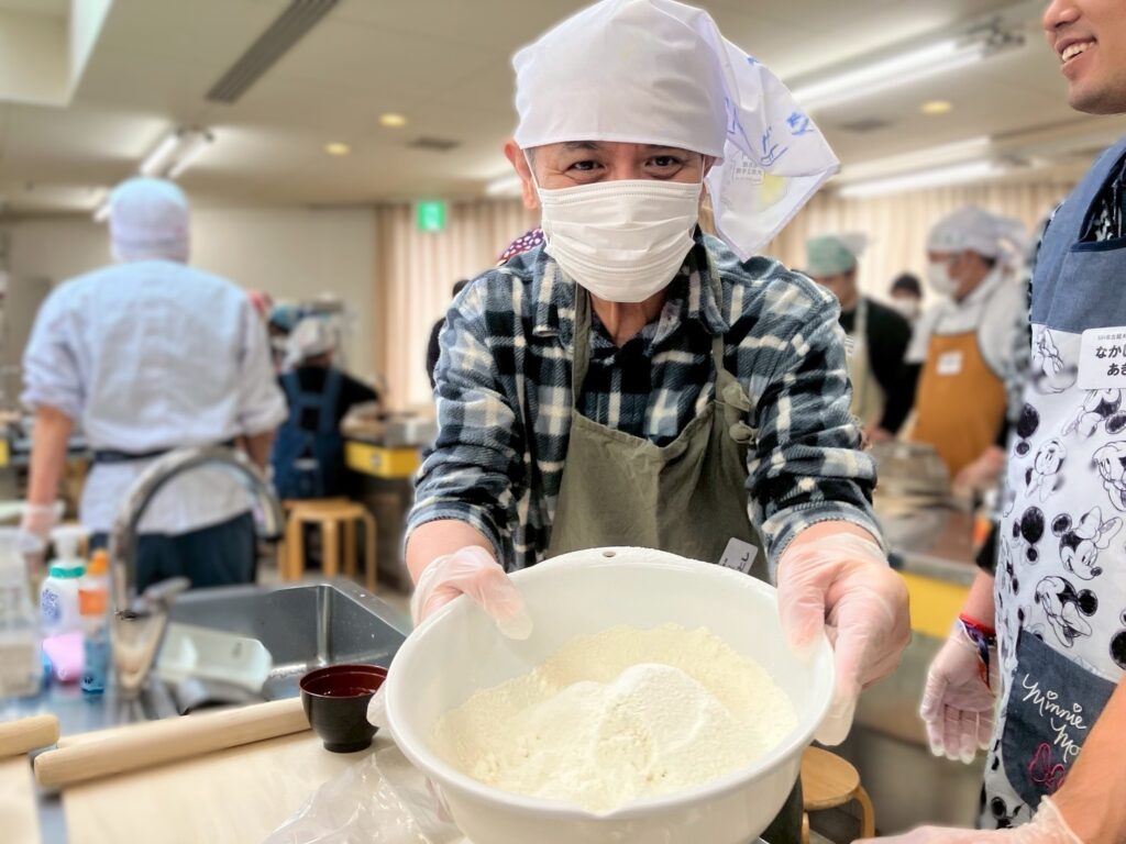今年度最後のうどん教室は、ソーシャルインクルーホームの皆さんとその家族、お世話になっている相談員さんを含め総勢40名の教室となりました